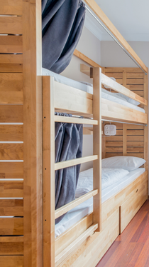 Yemeksiz, self-servis konaklama (tek, çift ve dört kişilik odalar)